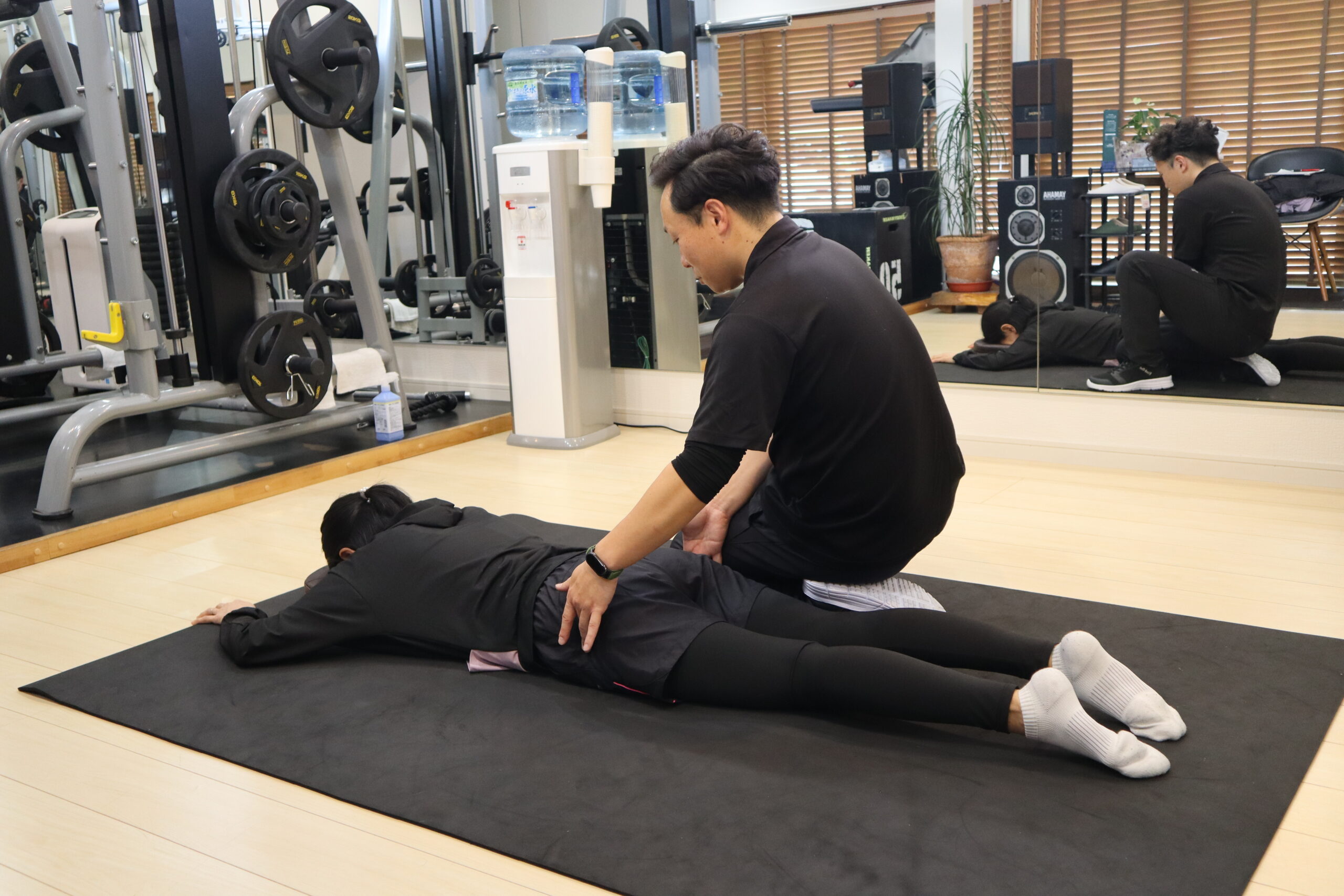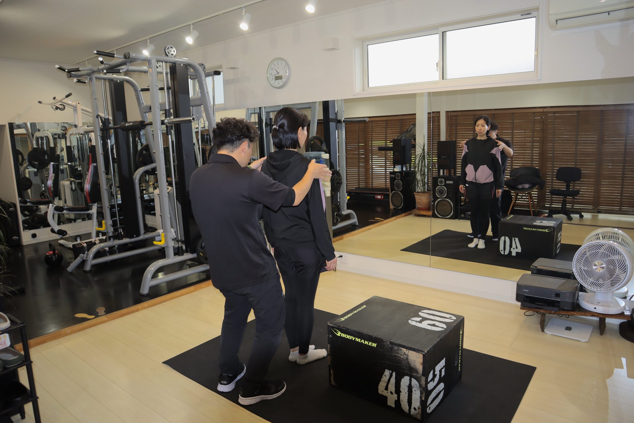 実際に施術を受けている様子や、パーソナルトレーニングで指導している風景を写真で紹介します。TAKUMee提供